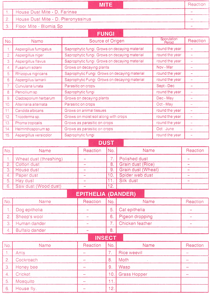 These lists are those of routinely tested allergens-but many can be added on prior request & arrangement.